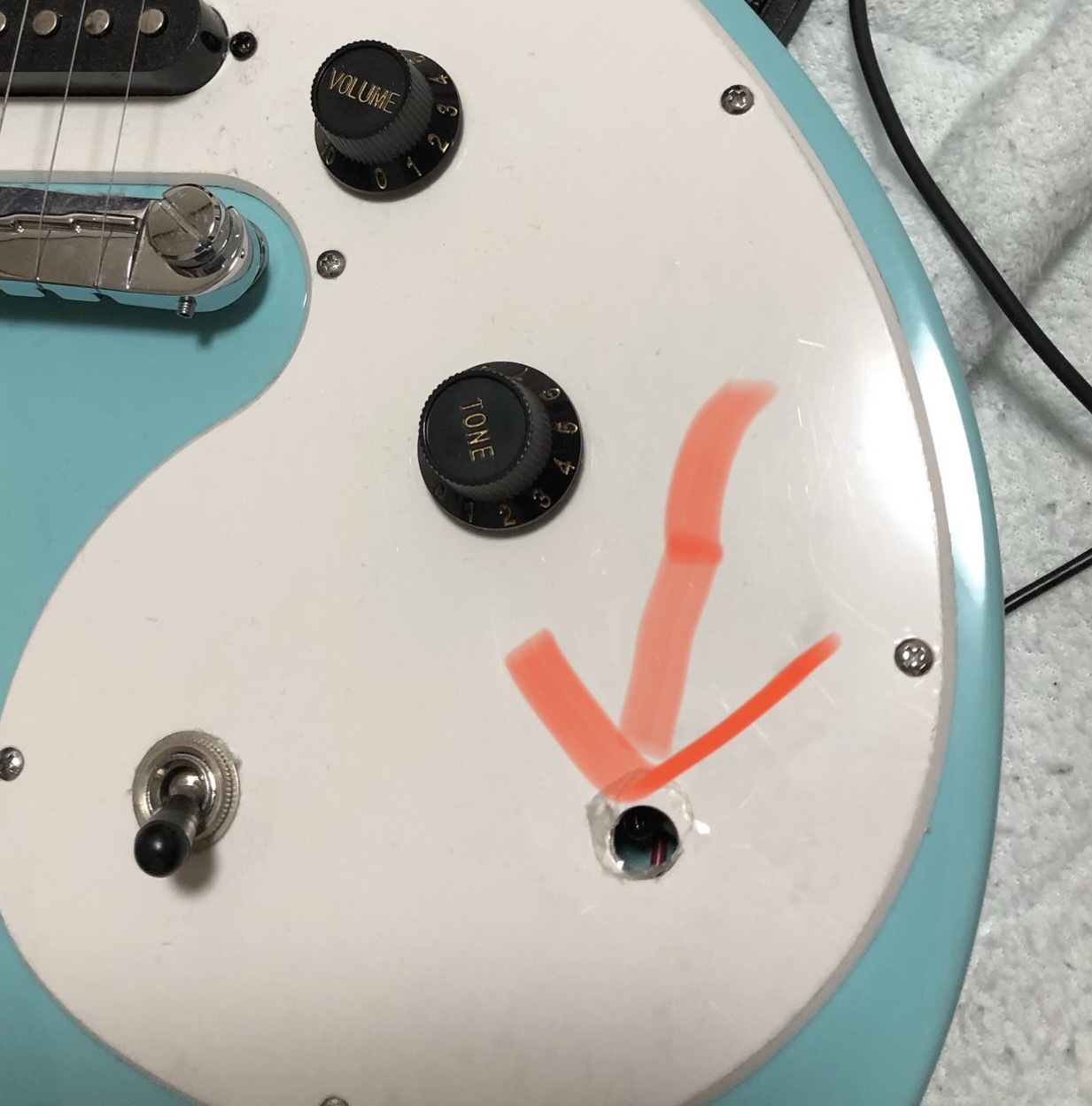 そのままはめることできないんだけど…と思って調べたらどうやらギターの中にネジが埋まっちゃったみたいですね。