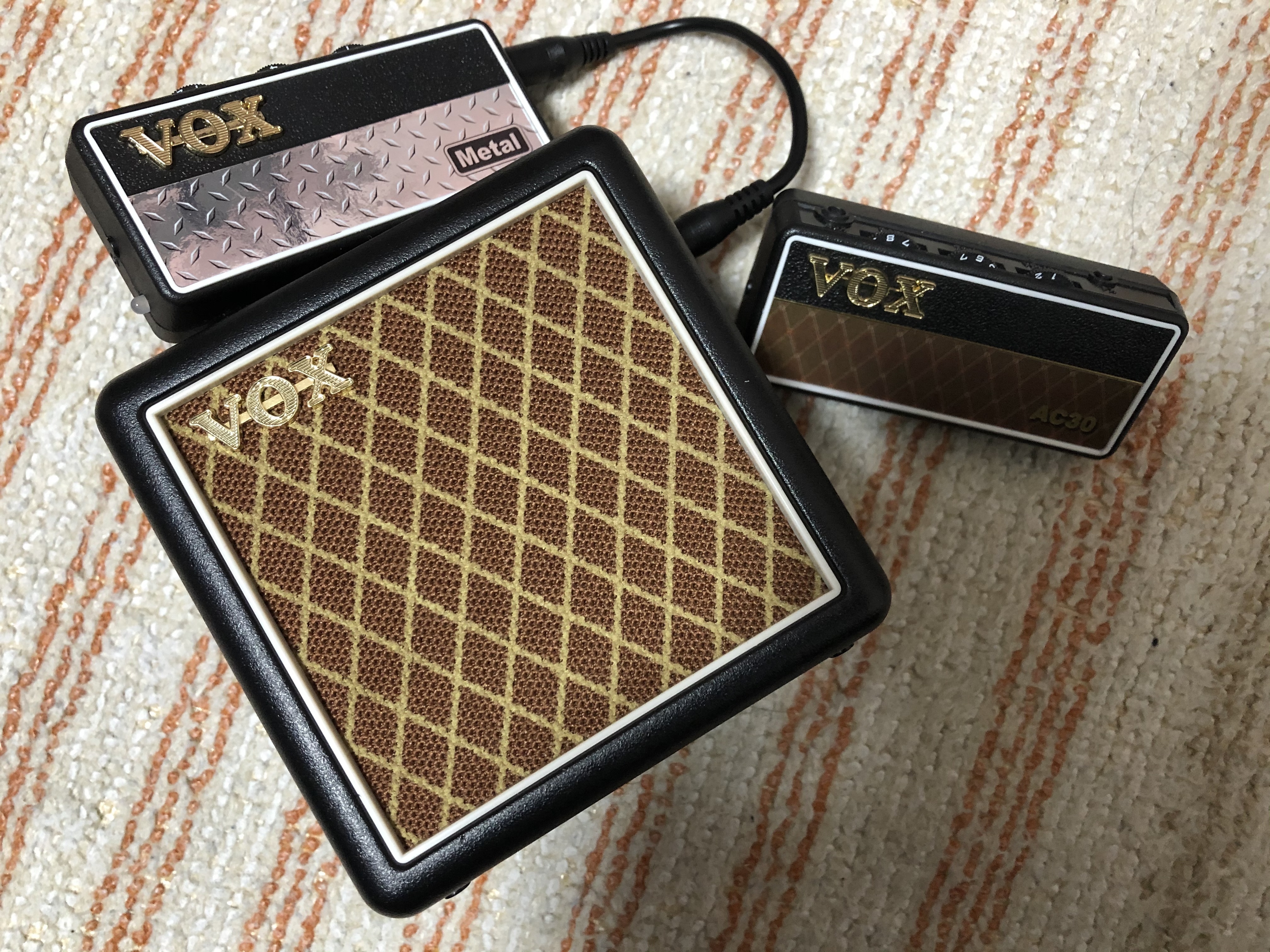 普段の練習ではヘッドホンアンプAC30とスタックアンプを合わせて使う自分、