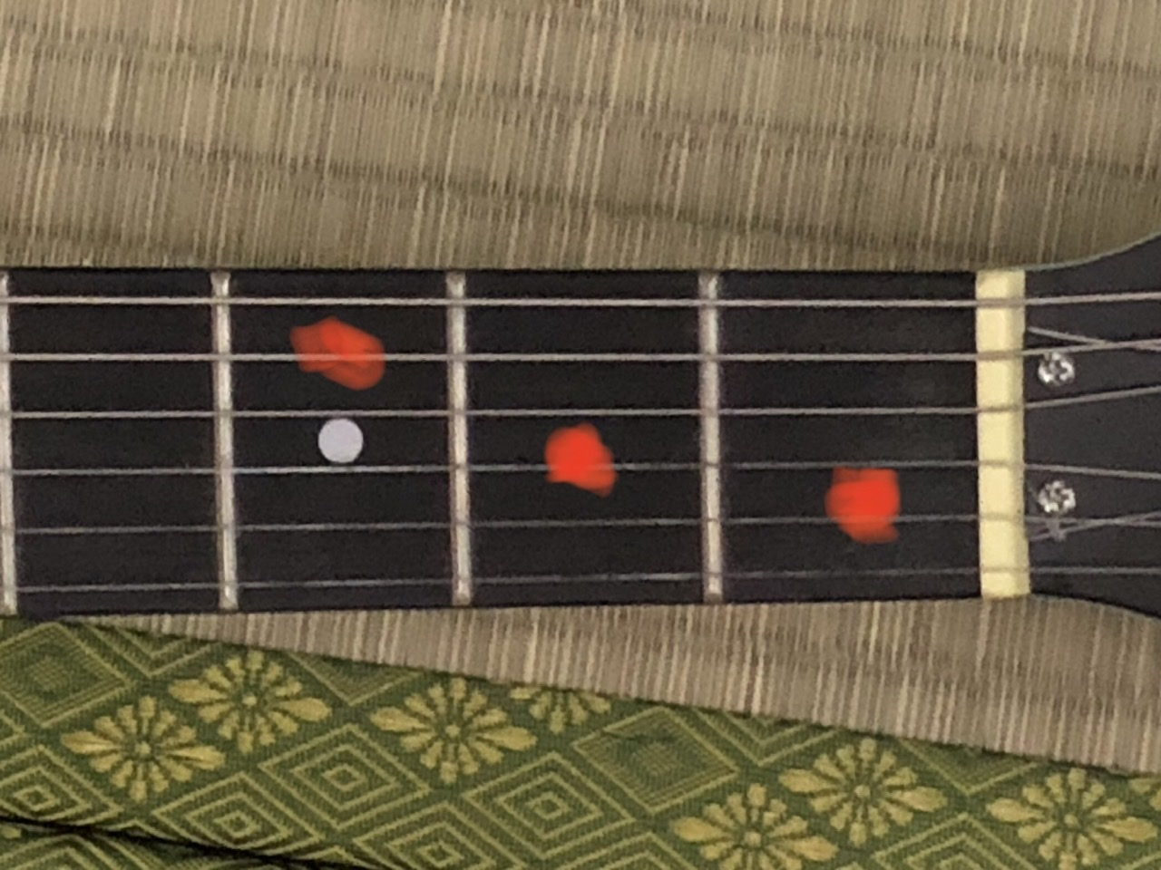 でもいつもの弾き方意識して、人差し指たてむきで全ての弦を押さえるのは物理的に無理ですね。。。